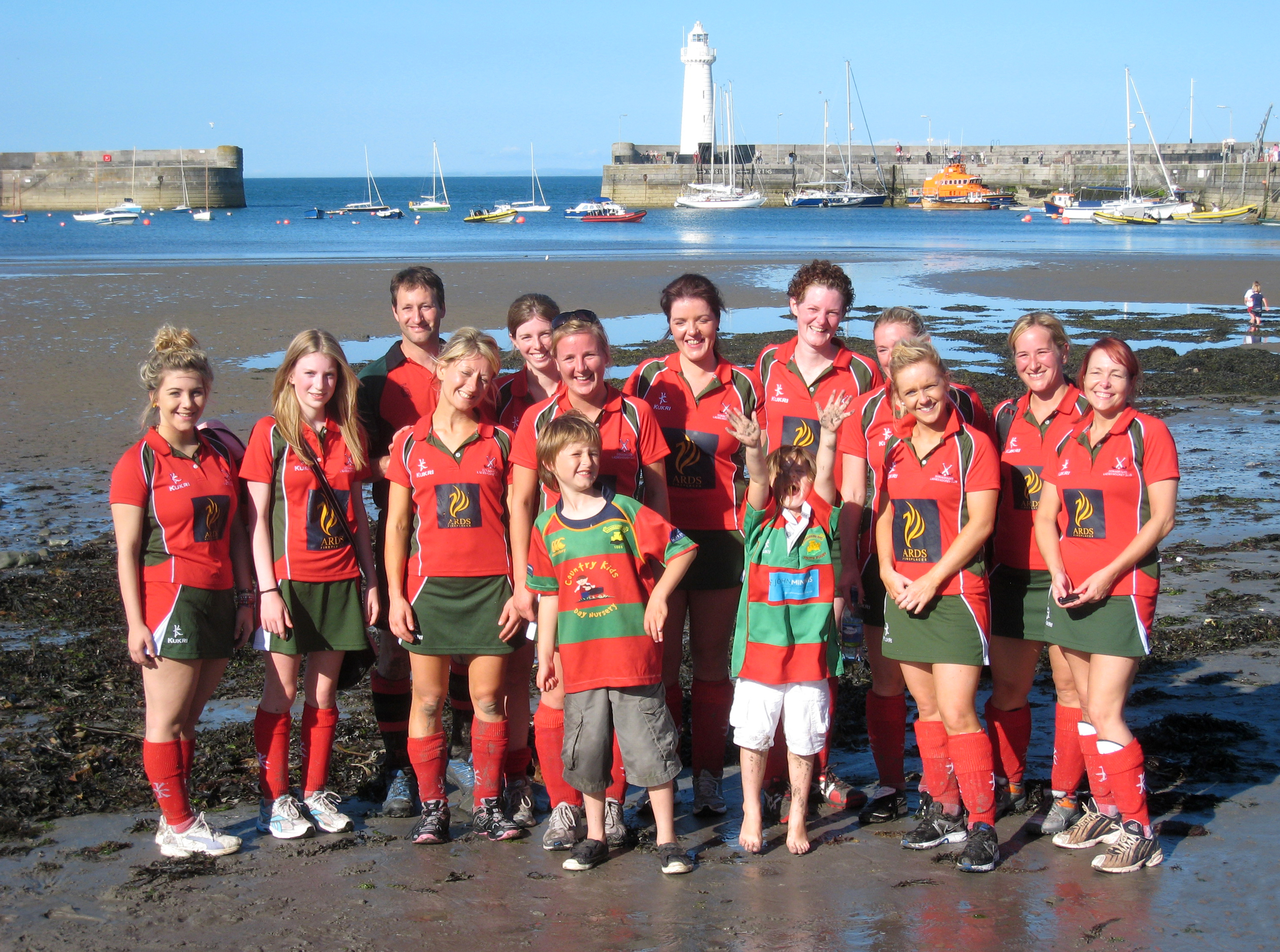 Last Saturday saw the return of the two day Dee Festival and the infamous Birdman competition. Alongside the face painting, bouncy castles and eejits jumping off the end of the pier, players from Donaghadee Ladies Hockey Club took part in the festival in their own inimitable style. Cooled by refreshments from the Pier 36 beer garden as they waited for the tide to recede sufficiently, the Hockettes gamely took to the sand in what surely must be one of the first (and possibly the last!) games of beach hockey to be staged in the Dee.