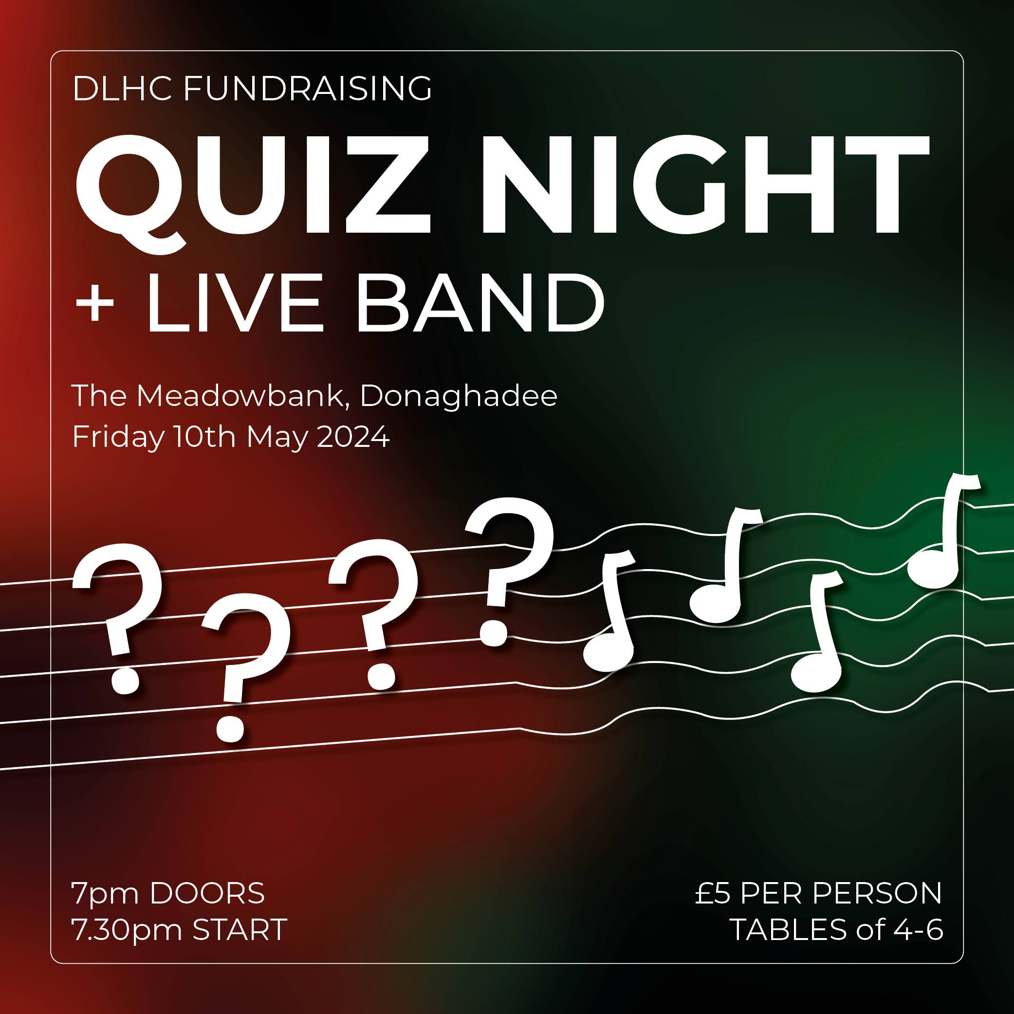 The club is delighted to announce that this year’s big fundraiser will be a Table Quiz with live music on Friday 10th May in the Meadowbank in Donaghadee with all proceeds going towards club funds to help cover pitch and insurance costs. £5 per person with tables of 4-6. Places are limited so early booking of tickets is highly advised! To secure tickets, please speak to Nicola Patton or email dlhc@hotmail.co.uk – we’d love to see you there!