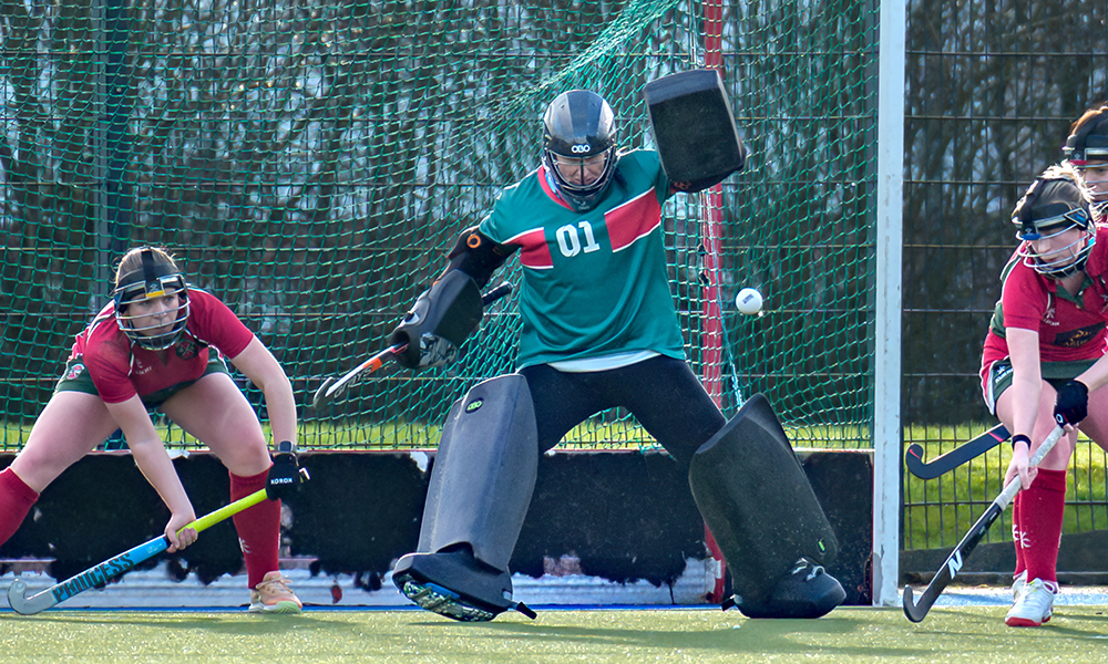 The home side shifted gears, forcing Donaghadee onto the back foot and winning a succession of penalty corners that heaped immense pressure on the Dee defence. Donaghadee goalkeeper Faith McMillen was called into action repeatedly, producing several crucial, acrobatic saves to keep KV at bay and maintain the two-goal cushion. Kathy turned a straight strike round the post to safety and Row Moore was also on hand to deflect wide.